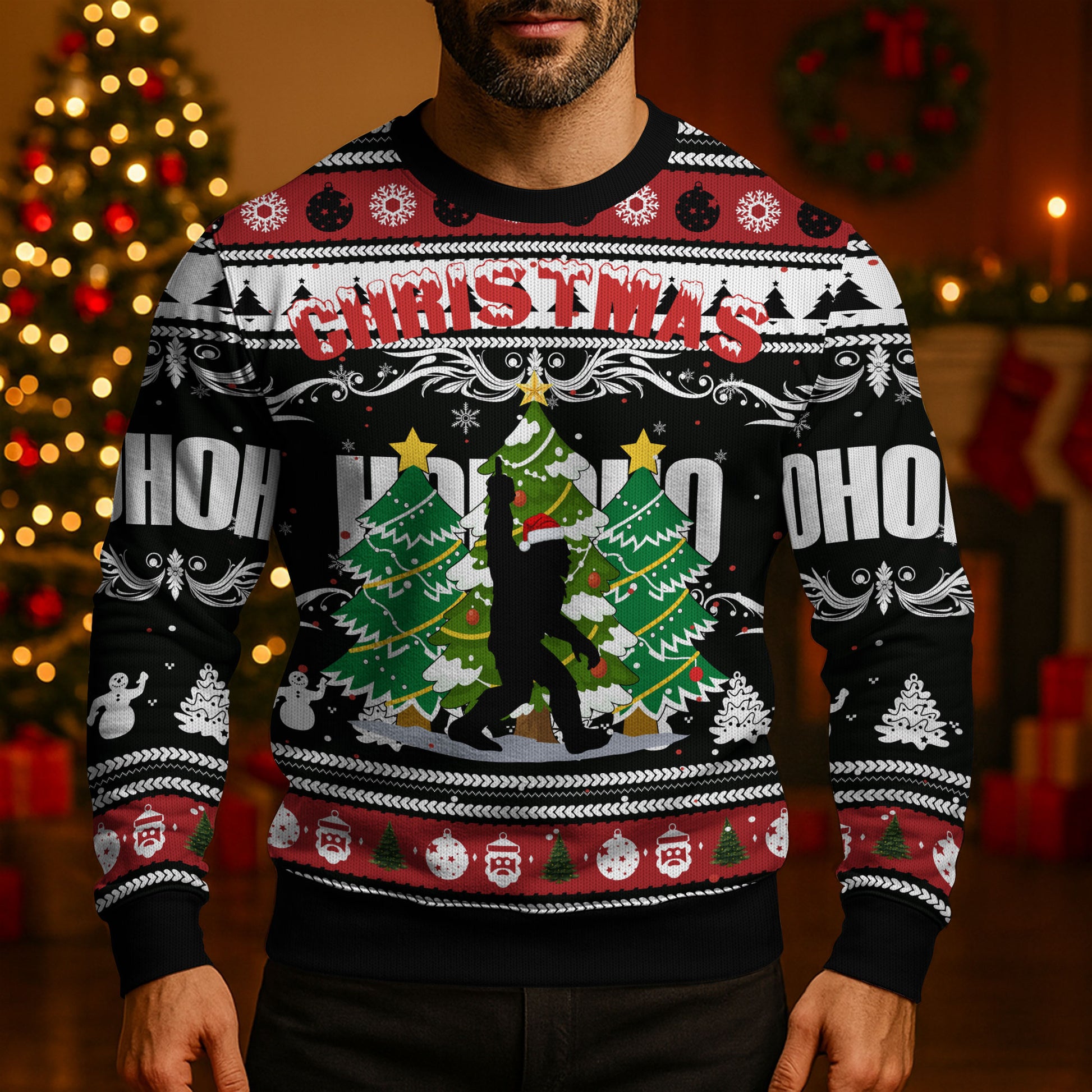 Unique Design – Bigfoot is ready for the holidays! Featuring a quirky, one-of-a-kind Christmas pattern, this ugly sweater turns heads and sparks laughs wherever you go.